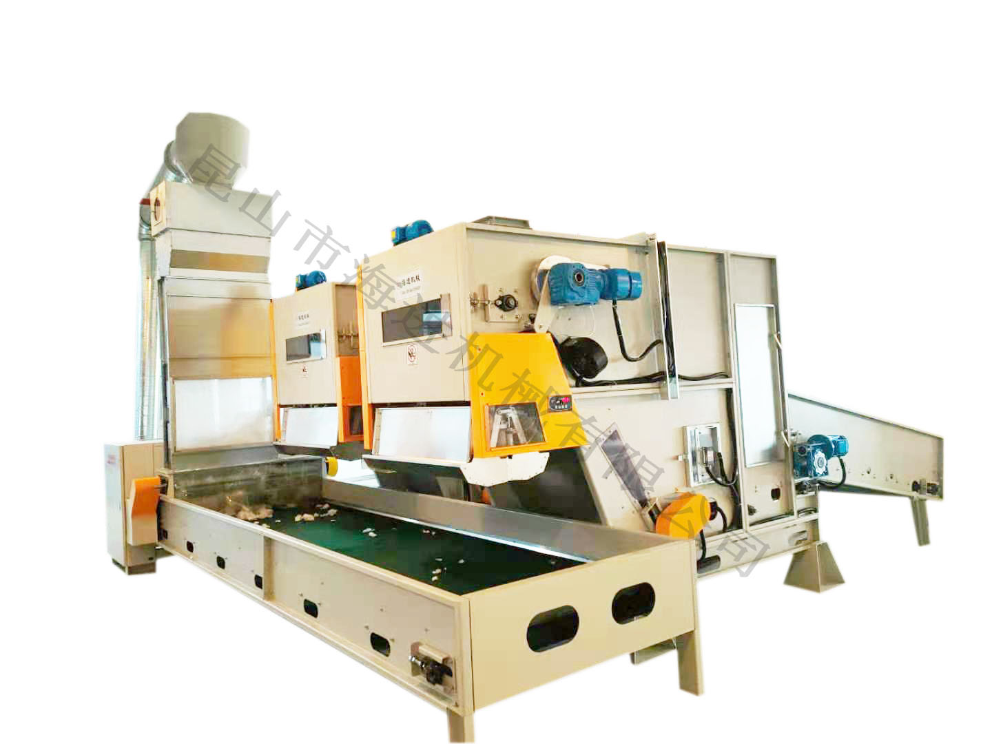 1)機(jī)器功能:將稱重開包機(jī)送過來的原料初步開松,通過送棉風(fēng)機(jī)送到集棉箱中。